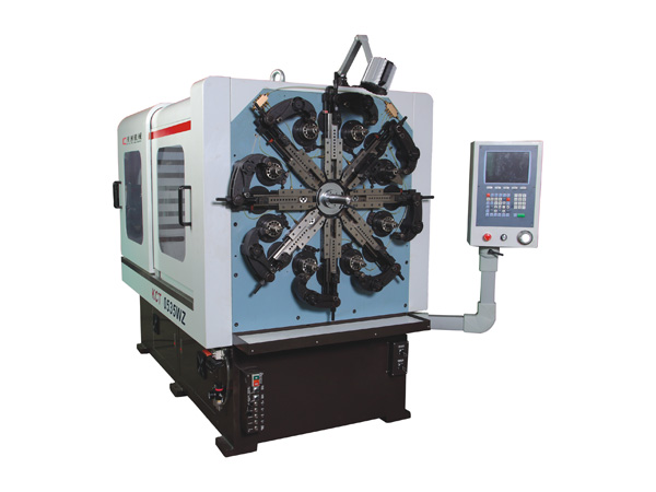 Our company's KCT-0535WZ 5 Axis CNC versatile spring rotating forming machine adopts Taiwan CNC control system, using the Japanese SANYO servo motor and high precision bearings, the models of a total of five axes, respectively, camshaft, feeder axis, rotary mandrel, spool roll and crankshaft system through CNC code, respectively. The feeding line and cam drive system of synchronous control, can achieve 24 hours of precise operation. In addition, due to the high precision servo motor and computer control of the spring machine, we can easily produce the spring products with precise size and complicated angle by combining the servo rotation axis and the crimping shaft.